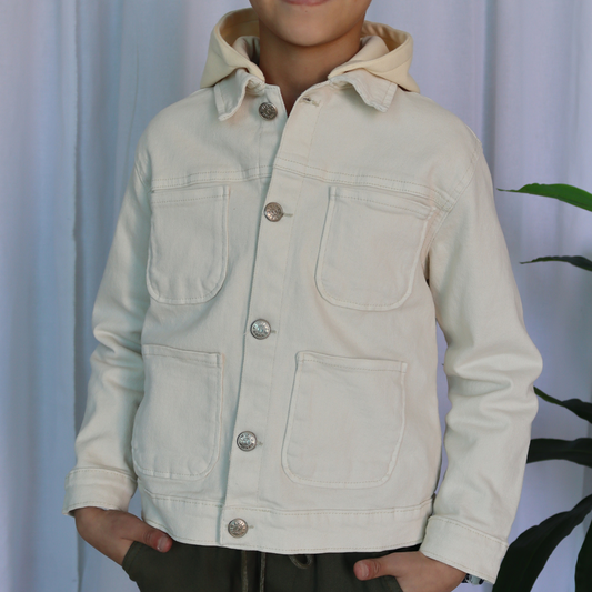 Surchemise garçon avec capuche en jean - Écru