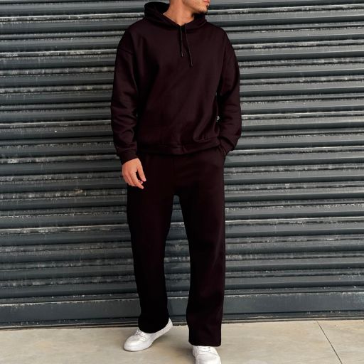 Jogging confectionné en coton molletonné gratté, Col à capuche réglable et manches longues et une poche kangourou sur le devant.